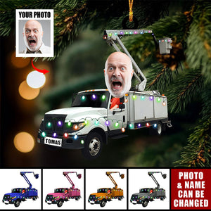 Lineman Bucket Truck - Personalized Acrylic Photo Ornament - Christmas Gift for Lineman
